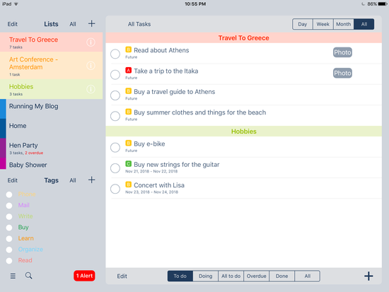 - LISTS, TASKS, TAGS, NOTES, PHOTOS, PRIORITIES, MULTIPLE DATES AND REMINDERS!